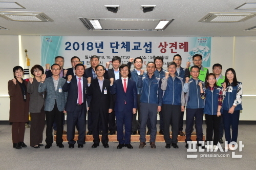 조규일 진주시장은 "공무원 노사는 시민의 행복을 위해 함께 노력하는 동반자이며 상호 신뢰와 협력을 바탕으로 직원들의 복지증진이 최대한 반영될 수 있도록 성실히 협약에 임하겠다”고 밝혔다.