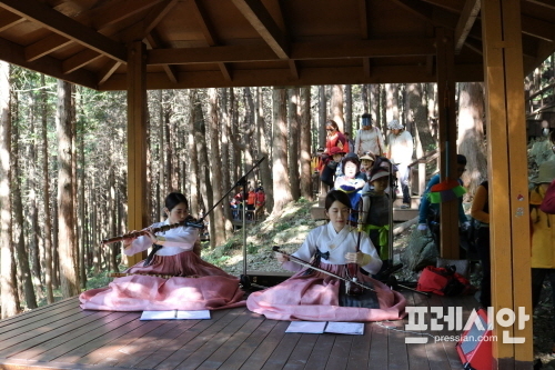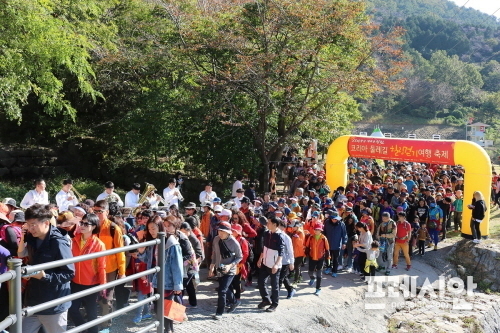 20일 진해구 장복산 일원에서 열린 이번 축제에 참가자들은 벽해정 궁도장에 모여 조각공원 – 드림쉼터 – 삼밀사를 돌아오는 4km 1시간 코스를 걸었다.
