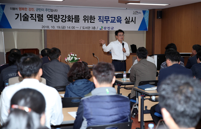 강진군은 지난 19일 도서관 3층 세미나실에서 군민의 생활과 밀접한 관계가 있는 토목, 건축, 도시계획 담당 시설직 공무원 50여명을 대상으로 공직자의 자세, 건설업무 추진 시 유의사항, 민원처리 방법 등에 대해 직무교육을 실시했다고 23일 밝혔다.
