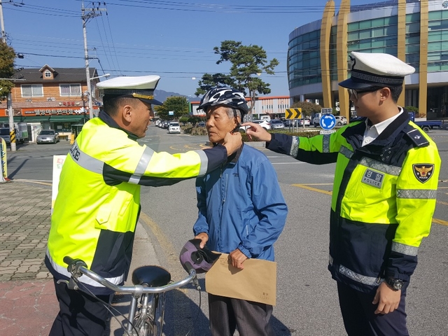 곡성경찰서는 지난 9월 28일부터 시행된 개정 도로교통법 홍보를 위해 5일시장 내 주민들을 상대로 자전거 안전모 착용 홍보활동을 실시했다고 24일 밝혔다.