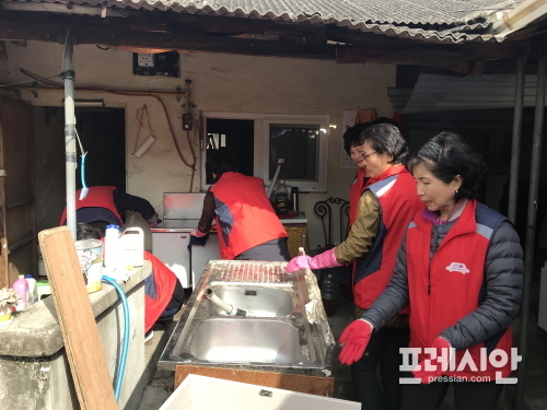 뚝딱뚝딱! 집수리 사업은 회원들이 어려운 세대를 직접 방문하여 도배․장판 및 싱크대 교체 등 봉사에 참여하고 생필품 등을 지원하여 쾌적한 주거환경을 조성하는 사업이다.
