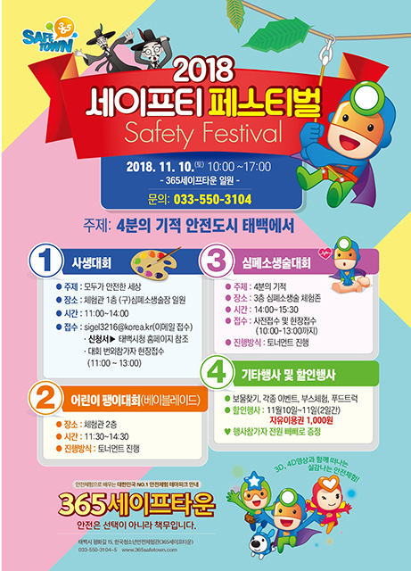 강원 태백시(시장 류태호)는 오는 11월 10~11일 이틀간 한국청소년안전체험관 일원에서 ‘2018 세이프티 페스티벌'을 개최한다고 29일 밝혔다.