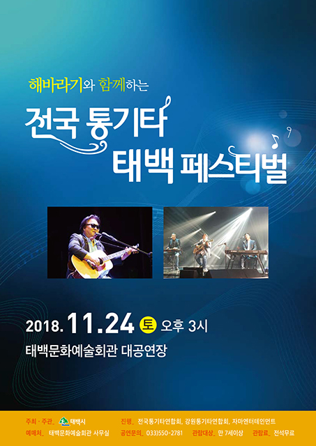 통기타의 향연으로 펼쳐질 ‘해바라기와 함께하는 전국 통기타 태백페스티벌’이 태백문화예술회관에서 개최될 예정이어서 기대를 모으고 있다.