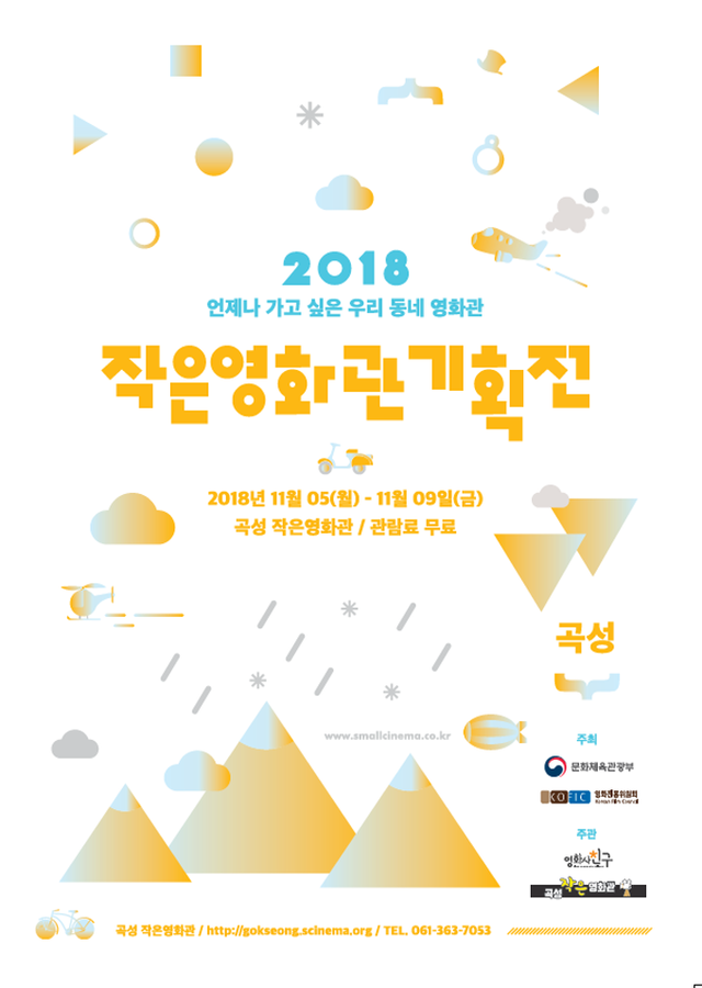 문화체육관광부와 영화진흥위원회가 주최하고 영화사 친구와 곡성 작은 영화관이 주관하는 <2018 작은영화관 기획전>은 무료로 진행되며 영화 관람권은 예매 또는 현장 발권이 가능하나 현장 발권이 조기 매진될 수 있으니 관람 전 잔여석 확인은 필수이다.