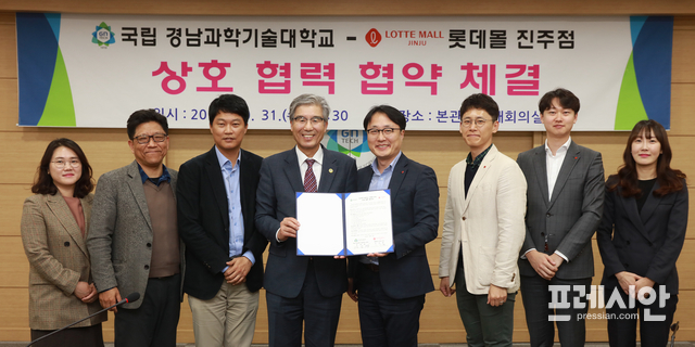 이날 MOU 체결식에는 경남과기대 김남경 총장, 박종해 기획처장, 롯데몰 신지원 점장, 조용필 부점장 등 10여 명이 참석했다.