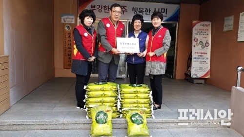 경남 진주우편집중국 행복 나눔 봉사단은 지난달 31일 진주시가좌사회복지관을 방문해 관내 소외계층에게 전달해 달라며 백미 140킬로그램(50만 원 상당)을 맡겼다.