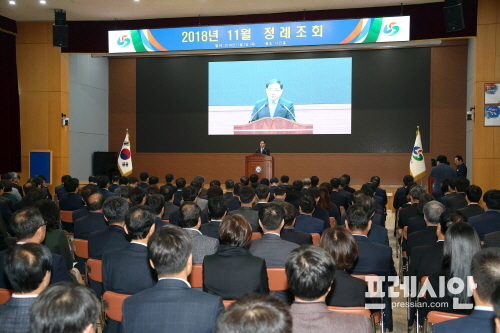 한편 이날 정례조회에서는 '건강도시상', '2018년 지방재정 신속집행 추진평가', '복지행정상' 등 3개의 기관상과 민생규제 혁신 공모전 우수상, 지역사회보장계획 시행결과 평가 유공 표창장, 규제개혁 경진대회 최우수 및 장려상, 그리고 베스트공무원 등 9명에 대한 시상도 진행됐다.