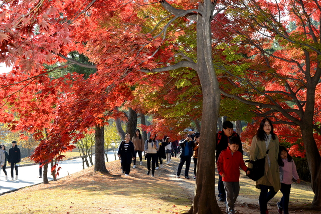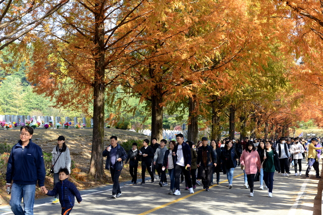 ▲ 보훈사랑 현충원길 걷기대회에 참가한 시민들이 단풍길을 걷고있다 ⓒ국립대전현충원
