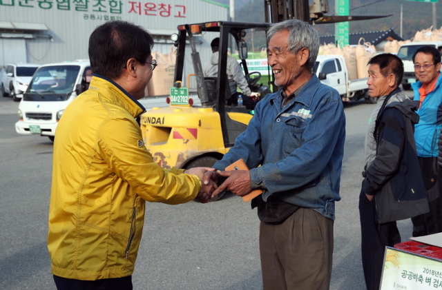 한편, 공공비축미곡 매입 현장을 방문한 이승옥 군수는 올 한해 벼농사를 짓느라 고생한 주민들을 격려하고, 특히 차량이나 지게차로 인한 안전사고가 발생하지 않도록 각별히 조심해 줄 것을 당부했다.