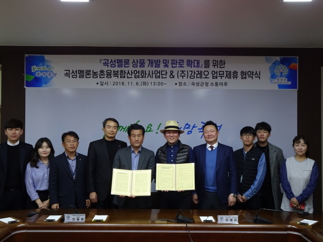 곡성군(군수 유근기) 곡성멜론농촌융복합산업화사업단은 지난 6일 ㈜강레오와 곡성멜론을 활용한 상품개발 및 판로확대 기반조성을 위한 업무협약(MOU)을 체결했다고 밝혔다.