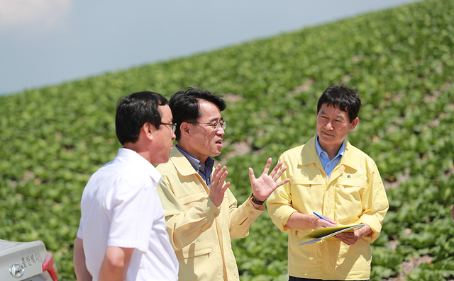 ▲태백 매봉산 고랭지 배추단지 폭염피해 현장을 둘러보고 있는 송석두 강원도 행정부지사. ⓒ태백시