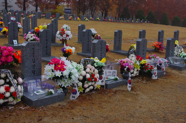 현재 소방관 묘역 맨 앞 줄에는 충남 아산에서 도로 위의 개를 구조해 달라는 신고를 받고 출동했다가 교통사고로 꽃다운 생을 마감한 여성 소방관 3명이 나란히 안장돼 있다.