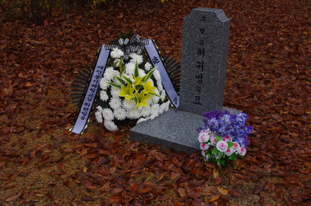 ▲ 대전현충원의 '11월의 현충인물' 허귀범 소방관 묘 ⓒ프레시안(육심무 기자)