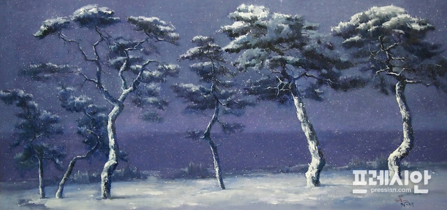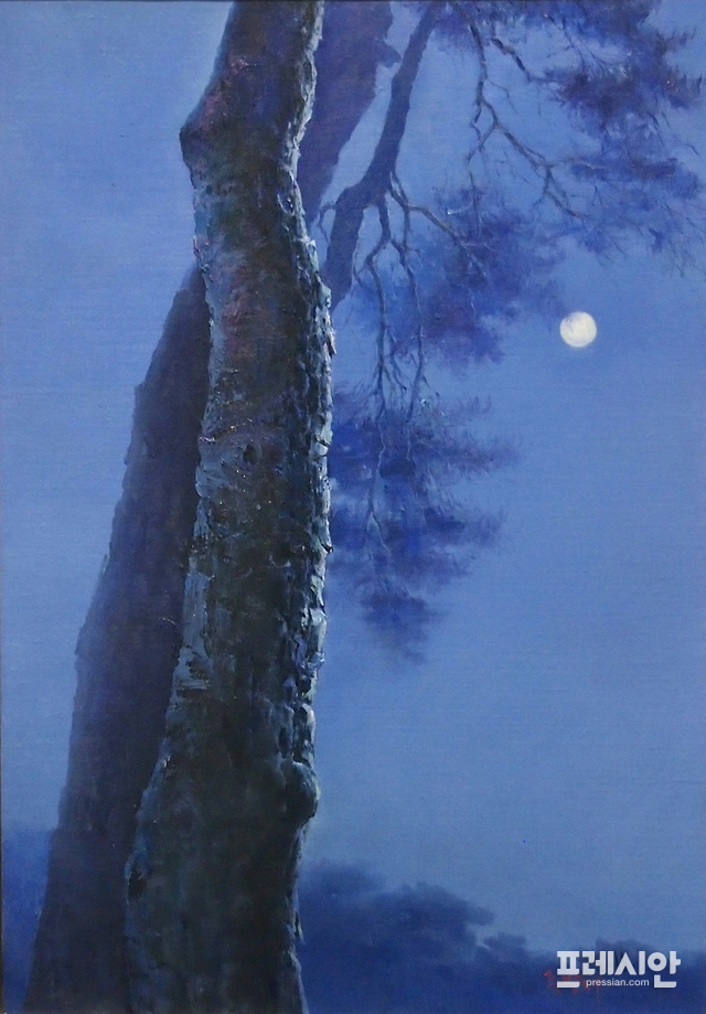 작품은‘소나무-야경1, 72x50, 캔버스에 유채’, ‘소나무2, 91x60, 캔버스에 유채’, ‘소나무-설송도, 136x65, 캔버스에 유채’ 등이다.