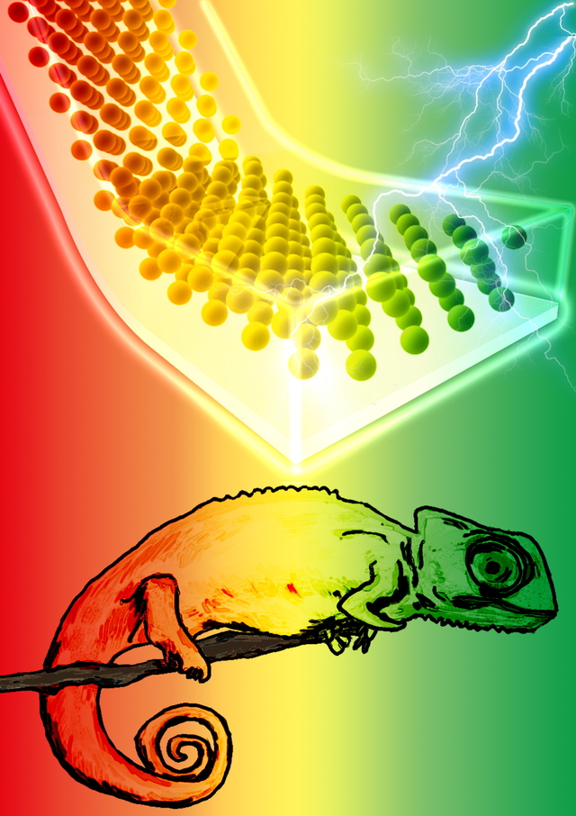 이번에 개발된 소재는 나노미터 규모의 유전탄성체 기반 소프트 액추에이터를 도입, 전기 자극에 따라 광결정 구조 간의 간격이 제어되면서 색을 변화시킨다.