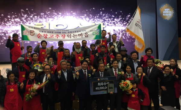 전북농협은 16일 농협중앙회 대강당에서 개최된 ‘제1회 깨끗하고 아름다운 농촌마을 가꾸기 경진대회’ 시상식에서 순창 고추장익는마을이 최우수상,무주 명천마을이 장려상을 수상했다고 밝혔다.
