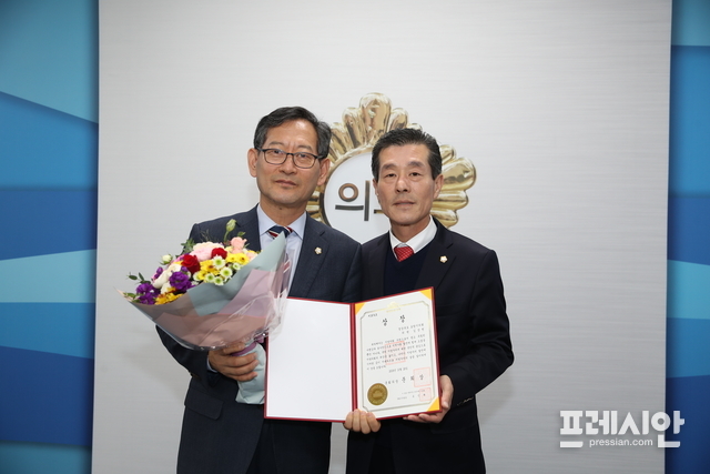 국회의장상은 지난 달 29일 지방자치의 날 행사에서 지방의회와 지방자치 발전 유공에 따라 수여한 것으로, 상장은 지난 16일 포항시의회 제255회 임시회 전체의원 간담회에서 전수했다.