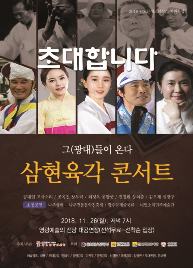 전남문화관광재단의 남도문예르네상스 지원 사업 일환으로 펼쳐지는 이번 공연에서는 공대일 고사소리, 공옥진 창무극, 최정옥 용왕굿, 전경환 상쇠춤, 김오채 설장구 등이 재현되어 영광 삼현육각의 진수를 관객들에게 선보일 예정이다.