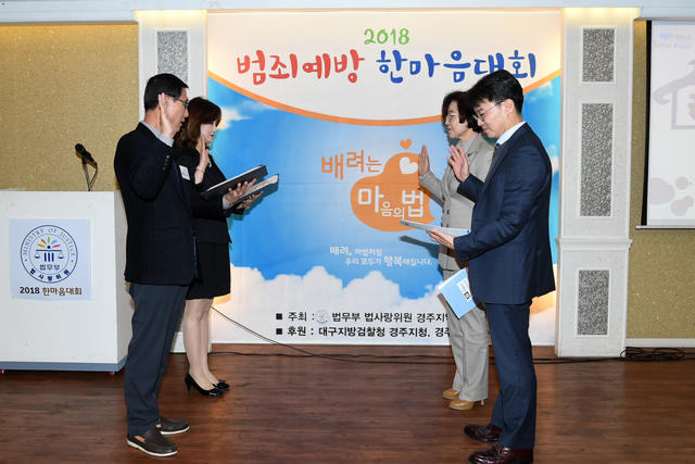 이날 대회에는 대구지방검찰청 경주지청 한웅재 지청장, 주낙영 경주시장,윤병길 시의장, 교도소장 등 유관 기관장과 모범청소년, 법사랑위원, 자원봉사자 등 200여명이 참석했다.