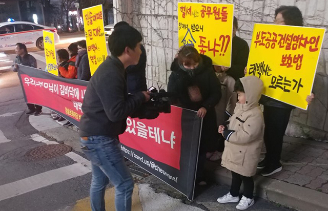 박준호 청솔임대아파트 비대위원장은 “지난 20일 생방송 아침이 좋다 프로그램 제작진이 아파트 현장을 방문해 홀로 사는 할머니와 전직 광부할아버지의 사연을 카메라에 담았다”며 “야간에 농성하는 현장에서 피해자들의 목소리도 전달했다”고 말했다.