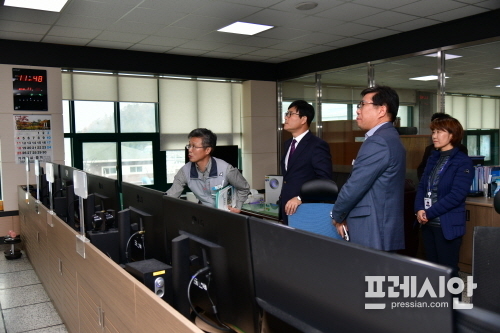 변 시장은 하수처리의 모든 과정과 홍보영상실, 수질분석 실험실, 하수슬러지 자원화시설을 꼼꼼히 둘러보고 담당 공무원들의 건의사항 및 애로사항 등을 경청한 후 열악한 환경에서 근무하는 직원들에게 격려를 아끼지 않았다.