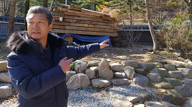 ▲태백산 입구 청원사 인근에 담을 축조하면서 지역주민들이 반발하고 있다. ⓒ프레시안