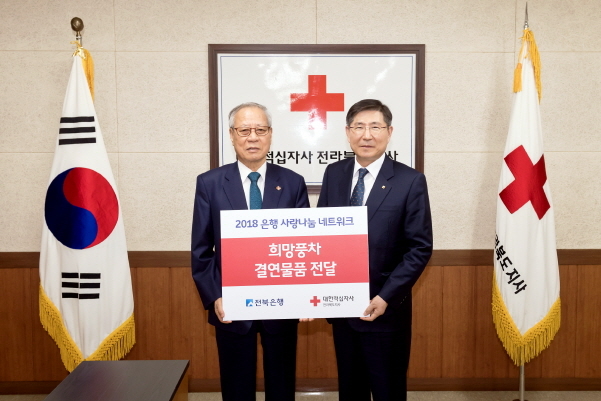 전북은행은 28일 전주시 장동에 위치한 대한적십자사 전북지사에서 ‘2018 은행사랑나눔네트워크 후원물품 전달식’을 실시했다.