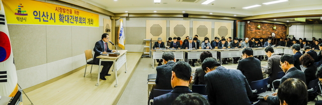 익산시는 매월 첫째주 시 산하 전 간부공무원이 참여하는 확대 간부회를 개최해 주요 현안사업과 시책업무를 공유, 토론하는 회의를 실시하고 있다.