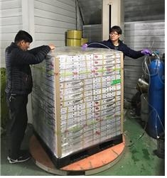 팰릿 MA포장은 수분투과도가 높은 PA필름과 탄력성이 좋은 LLDPE필름을 이용한 기밀포장, 포장량에 따른 호흡구 뚫기, 이산화탄소 주입으로 이뤄지며, 시간은 팰릿당 10분 이내다. 비용도 팰릿당 2000원 이내로 저렴한 편이다.