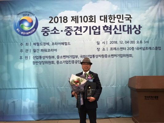 전성수 대표는 작지만 강한 혁신으로 변화와 혁신을 주도하고 중소기업으로서 새로운 모범적인 리더십상을 보여줘, 심사위원들로 부터 높은 평가를 받았다.
