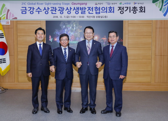 지난 7일 전북 익산시청에서는 '금강수상관광상생발전협의회' 2018년 하반기 정기총회가 열렸다. 금강이 지나는 4개 시군((익산, 논산, 서천, 부여)으로 구성된 협의회는 이 날 올 한해 협의회 사업과 예산을 결산하고 2019년 회장 선임 및 사무국 설치안을 확정하고 향후 협력체계 구축 방안을 논의했다.
