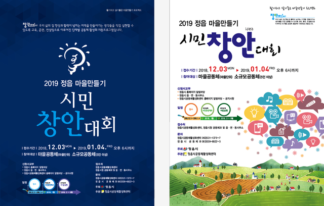 전북 정읍시는 더불어 활기차고 살기 좋은 지역공동체 만들기를 위해 시민들의 아이디어를 공개모집한다.
