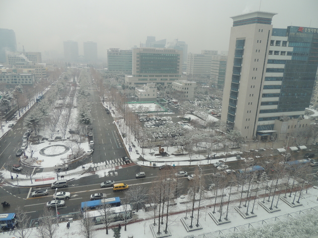 대전시와 세종시 및 충남 논산 계룡 등 일부 지역에 대설주의보가 발효 중인 가운데 11일 오후 3시 현재 대전 3.7 cm 청주 2.8 cm의 눈이 내려 쌓이고 있다.