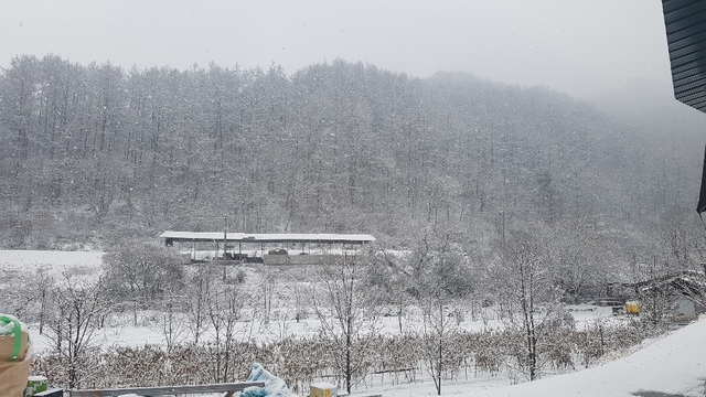 ▲ 눈내린 충북 괴산 지역의 농가 ⓒ프레시안(독자제공)
