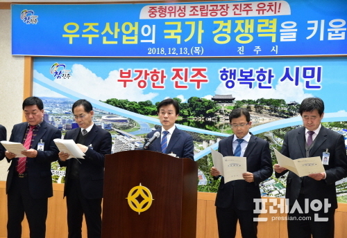 차세대 중형위성 조립공장 진주설립은 2015년 이미 진주시와 KAI(한국항공우주산업(주))간 협약을 체결하여 진주 유치에 합의하고, 우주부품시험센터는 KAI(주)의 위성조립공장 진주 유치를 전제로 구축되었기 때문에 차세대 중형위성 조립공장은 우주산업의 집적지인 진주로 오는 것이 당연한 일이라 생각한다.