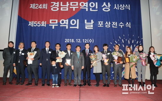 경상남도와 한국무역협회 경남지역본부가 12일 창원 풀만호텔에서 ‘제24회 경남무역인 상 시상식’과 ‘제55회 ‘무역의 날 정부포상 전수식’을 가졌다.