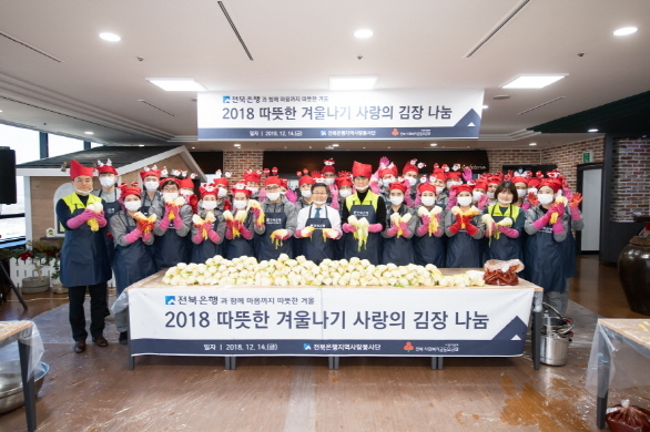 전북은행지역사랑봉사단 임직원들은 사회적 취약계층의 따듯한 겨울나기를 돕고자 2011년부터 매년 김장 나눔 봉사활동을 실시해 오고 있다.