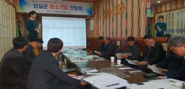 심민 군수는 “지역기업인들과의 간담회를 통해 기업들의 애로사항 및 건의사항을 적극 수렴하여 불합리한 규제를 정비해 나가겠다”며 “중소기업 지원정책에 반영하는 등 기업하기 좋은 임실 만들기에 최선을 다하겠다”고 강조했다.