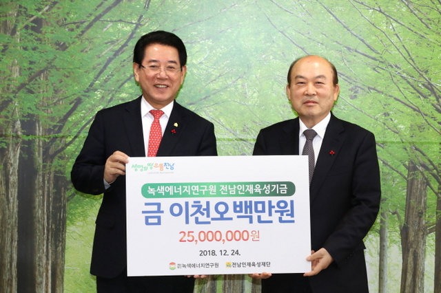전라남도와 경기도가 지역 상생 나눔 태양광발전소 건립을 추진, 그 첫 결실로 수익금의 일부를 장학금으로 기탁하게 됐다.