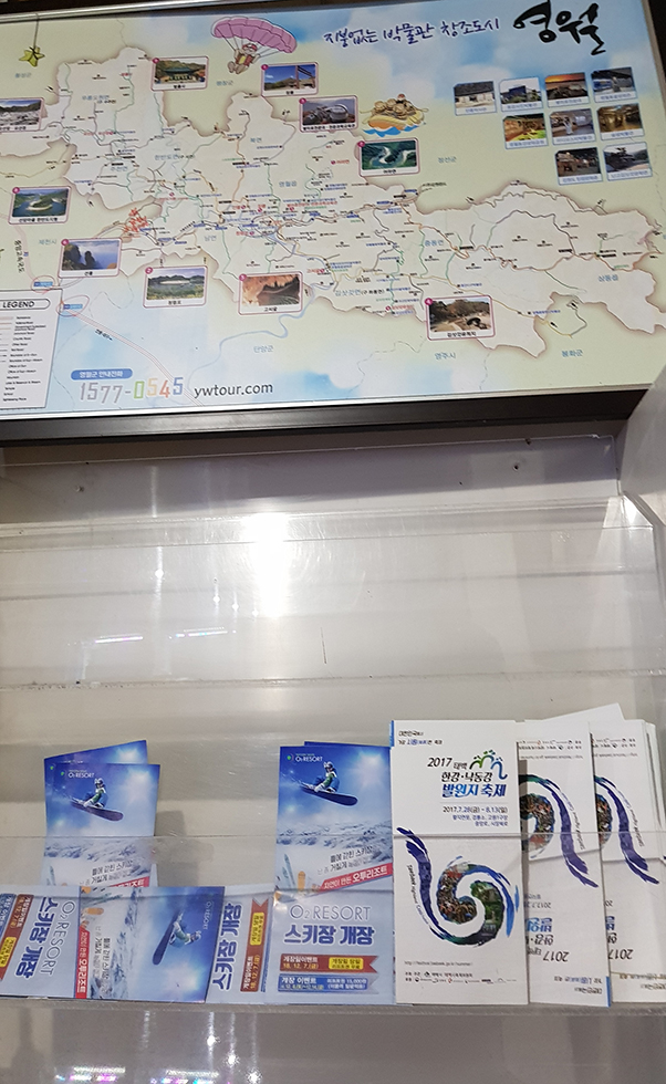 눈축제 홍보물은 없고 ‘태백 한강·낙동강 발원지 축제 홍보물’?…영월휴게소