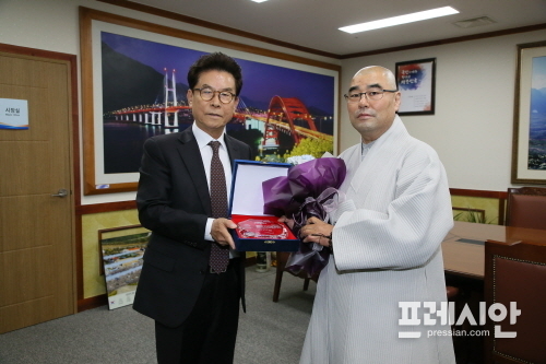 송도근 사천시장은 “평소 시정에 많은 관심을 갖고 솔선수범을 몸소 실천하고 계시는 회주무공 스님께 감사드리며, 앞으로도 어려운 계층을 위해 끊임없는 활동을 당부드린다.”며 그간의 노고에 감사의 인사를 전했다.