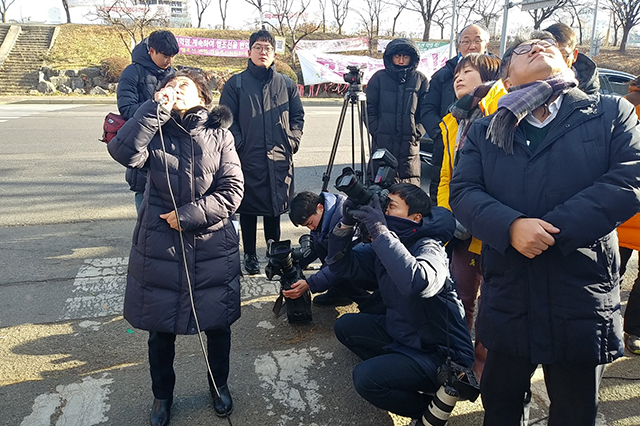 곽노현 전 교육감도 "저 위에 계신 분들은 사용자 측의 노조 불인정, 노사 합의 불이행 등 불법 의지에 맞서 노동 인권을 온몸으로 수호하시는 분들"이라며 "인권위는 인권 수호자들의 수호기관인 만큼 저 굴뚝 농성자들을 노동 인권 수호자로 지정해주길 바란다"고 했다.