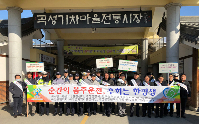 곡성군(군수 유근기)이 28일 곡성기차마을전통시장 앞에서 곡성경찰서(서장 양동재), 곡성군 안전보안관 등 유관기관 및 안전문화 시민단체와 함께 음주운전 예방 및 겨울철 교통안전 캠페인을 실시했다.
