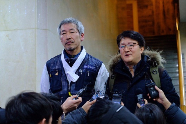 ▲ 차광호 파인텍 지회장과 이승열 금속노조 부위원장. ⓒ이창근