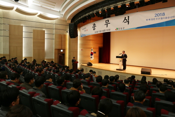 이날 종무식에서는 각 분야별 유공자에 대한 국무총리, 장관, 도지사 표창을 비롯해 군정발전에 기여한 공무원, 기관단체, 민간인에 대한 시상식이 이뤄졌다.