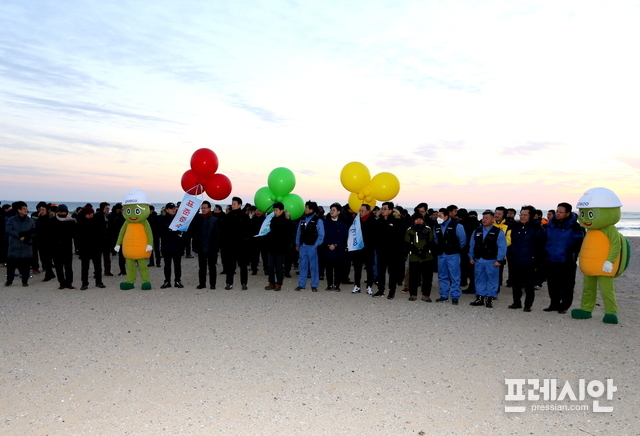 월포 해변으로 이동한 임직원들은 노사안정, 무재해실현, 표준준수 의지를 담은 풍선 날리기 행사를 한 후 일출을 보며 행사를 마무리했다.