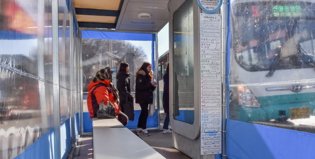 온실텐트가 설치된 정류장 안쪽은 바깥 기온보다 2~3도가 높고, 발열의자도 있어 많은 시민들이 추위를 피하는데 도움이 되고 있다.