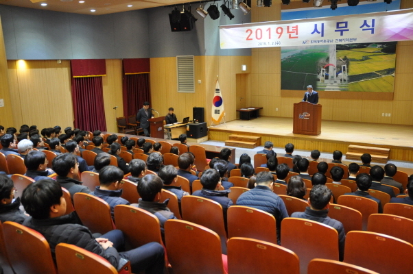 이날 시무식에서는 작년 12월 입사한 신입사원들에 대한 임용장 수여와 2018년도 유공직원의 표창 수여식을 진행하며 기해년 새해를 새롭게 맞이했다.