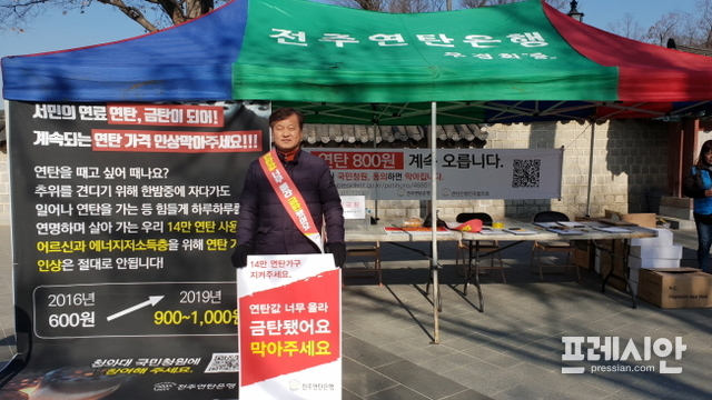 10여년간 에너지취약계층에 연탄을 전달해 온 전주연탄은행 대표가 1인 시위에 나섰다.