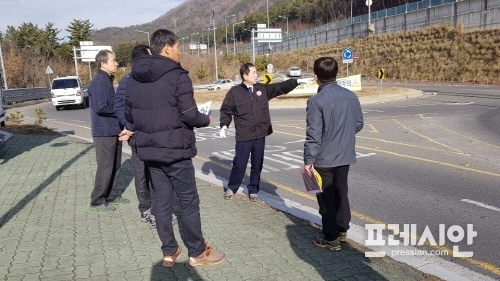 이번 현장 방문은 국도 25호선 양방향에서 빠르게 진입하는 차량들과 우선 회전교차로를 돌고 있는 차량들이 혼재하면서 사고의 위험이 높다는 민원이 있어 관련부서장과 함께 현장확인을 통해 개선책을 마련하기 위해서다.